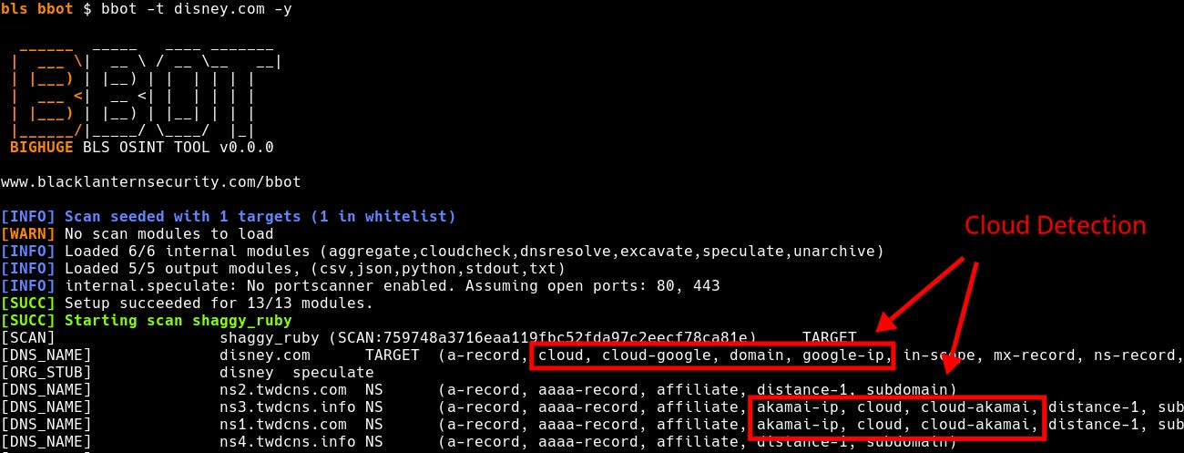 Basic cloud provider detection has always been built into BBOT. When you run a BBOT scan, hosts are tagged as “cloudflare”, “fastly”, etc: