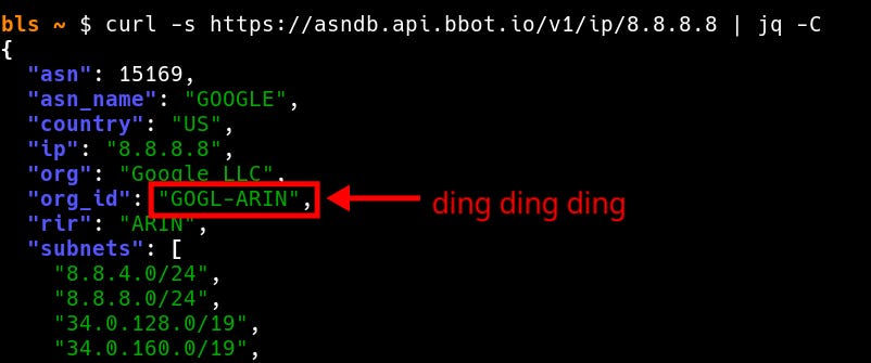 For IP addresses, instead of hardcoding CIDRs or ASN numbers, organizations are tracked by their Internet Registry IDs. This means CloudCheck can detect brand-new ASNs as they’re spun up, even before they’re announced to the public.